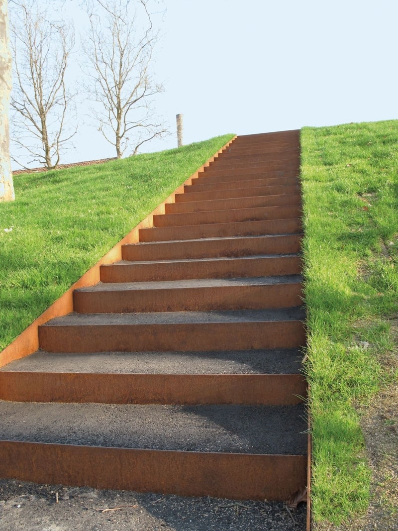 Standardiseret kantafgrænsning i ubehandlet, galvaniseret og cortenstål. Inkl. spyd og samlestykke.